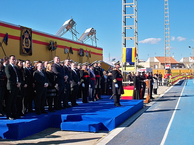 El acto, que ha sido presidido por el Almirante Jefe de Acción Marítima, Emilio Nieto Manso, acompañado por todo su Estado Mayor, ha contado con la presencia del Alcalde de La Unión, Francisco Bernabé; el Presidente de la Asamblea Regional, Francisco Celdrán; el Delegado del Gobierno en la Región, Rafael González Tovar, y la Consejera de Presidencia, María Pedro Reverte.