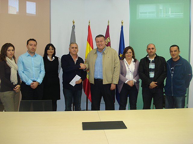 El Presidente de Cáritas en La Unión, Gregorio Ruiz, recogió, en la sede de Alcaldía, el cheque con la citada cantidad.