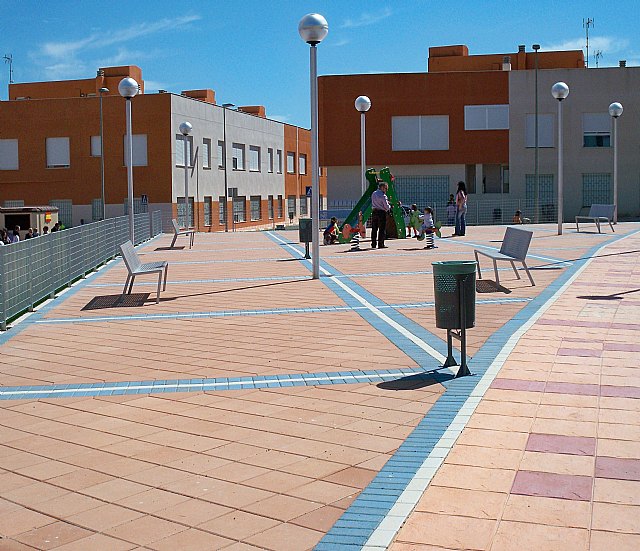 Por otra parte, la “Plaza de la Palma”, que ha sido objeto de obras de acondicionamiento y mejora, alberga un espacio reservado para juegos infantiles, fuente central y parterres con césped artificial.