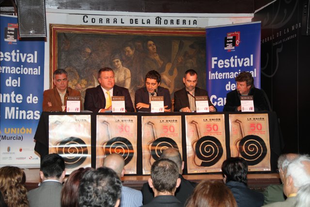 La presentación de la programación de las Bodas de Oro del Festival Internacional del Cante de las Minas de La Unión ha levantado una grandísima expectación en el ámbito político, cultural, social y empresarial de la capital de España. Así, han acudido a este acto, los Diputados Nacionales, Vicente Martínez Pujalte y Jaime García Legaz; el Senador Nacional, Pedro José Pérez; el Agregado Cultural de la Embajada de Japón en España, Yoko Bayashi; el Director General de Promoción Cultural de la Comunidad Autónoma, Antonio Martínez; la Concejala de Cultura del Ayuntamiento Cartagena, Rosario Montero; el periodista y presentador de la próxima edición del Cante de las Minas, Juan Ramón Lucas; el autor del cartel de la presente edición del certamen, Martín Chirino; el restaurador Lucio Blázquez, la bailaora Blanca del Rey, así como artistas que serán protagonistas del próximo Festival como Enrique Morente.