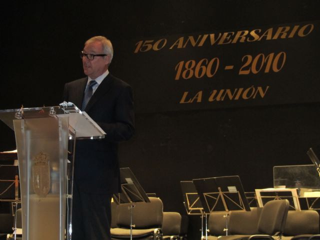 La Unión, 13 de noviembre de 2010. El presidente de la Región de Murcia, Ramón Luis Valcárcel, y un concierto extraordinario de la Orquesta Sinfónica de la Región pusieron ayer el broche final a las Jornadas de Clausura correspondientes a los Actos Conmemorativos del 150 aniversario de La Unión, que durante nueve días han colmado el municipio de actividades culturales y sentidos homenajes.