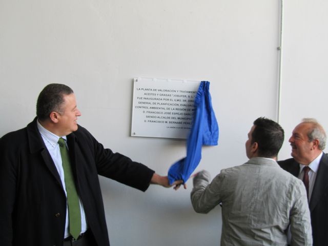La Unión, 22 de diciembre de 2010. El alcalde de La Unión, Francisco Bernabé, ha inaugurado hoy en el Polígono Industrial 'Lo Bolarín' la nueva Planta de Tratamientos de Aceites y Grasas de Jobufer S.L., una iniciativa empresarial cuya actividad principal es la recogida y gestión de los aceites usados procedentes de la hostelería para su posterior distribución a plantas de biodiésel.