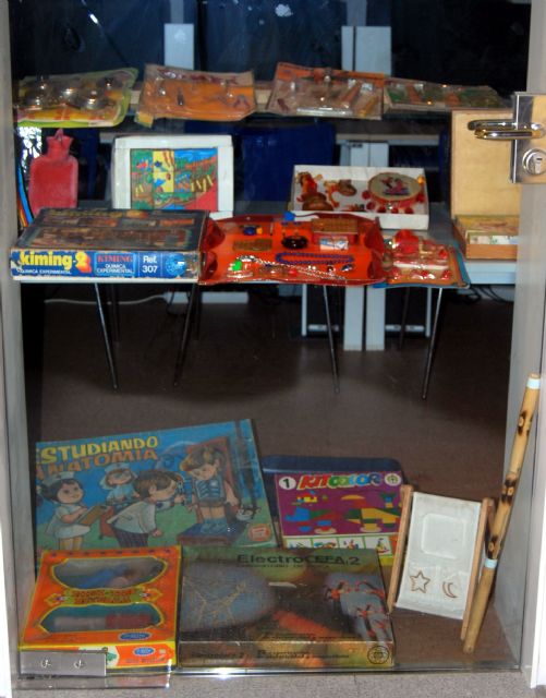 También se exponen gran cantidad de juguetes en lata, diversas maquinitas de cine y sus películas, varios trenecitos, mademanes, unas 20 muñecas, así como juguetes propios de siempre para las niñas, eyc