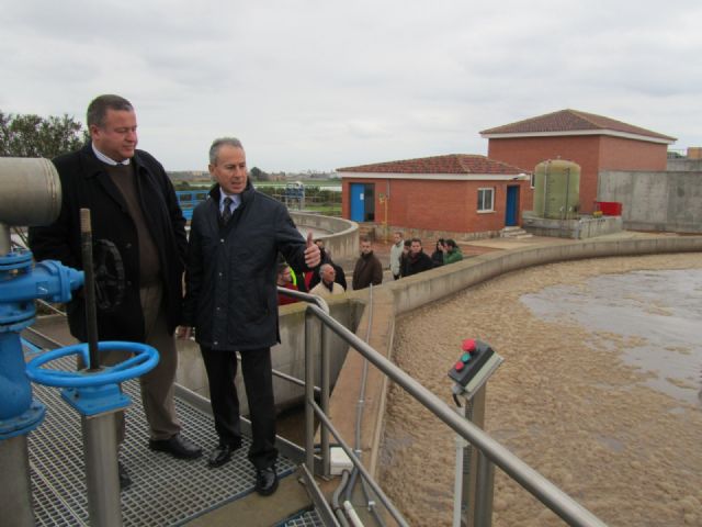 La Unión, 25 de enero de 2011. El director general del Agua en la Región de Murcia, Miguel Ángel Ródenas, y el alcalde de La Unión, han realizado hoy una visita, junto a una representación de agricultores locales, a la depuradora municipal de aguas, cuyas obras del ciclo terciario se encuentran actualmente en su fase final y tienen prevista su culminación en primavera.