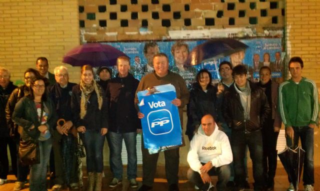 A pesar de la lluvia, que no dejó de caer en ningún momento, nuestros simpatizantes se emplearon a fondo para dejar colocada la publicidad electoral de los candidatos del Partido Popular de la Región de Murcia al Congreso y al Senado.
