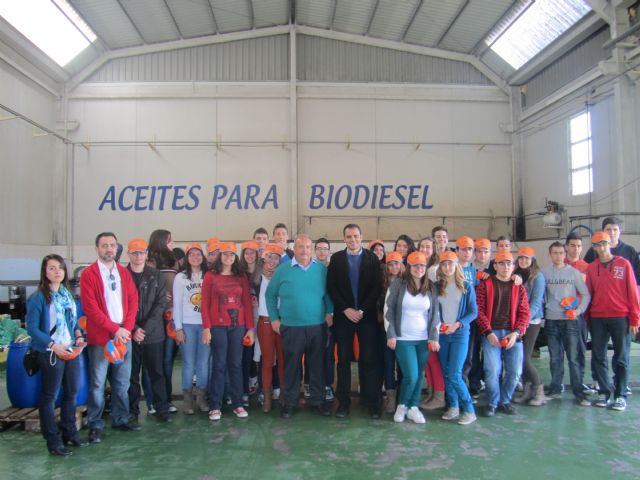 Un grupo de alumnos del colegio Sabina Mora han visitado en el Polígono Industrial Lo Bolarín las instalaciones de la empresa Jobufer, única instalación autorizada en la Región de Murcia para la recogida y tratamiento de aceites domésticos de cara a su reciclaje en biodiesel.