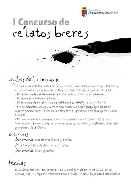 La Concejalía de Juventud del Ayuntamiento de La Unión ha organizado el I Concurso de Relatos Breves de nuestro municipio, en el que están invitados a participar todos aquellos que tengan interés por el mundo de las letras.