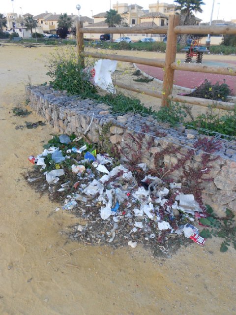 El PSOE de La Unión manifestó "que la plaza de la urbanización sufre un estado total de abandono y dejadez por parte del Equipo de Gobierno del PP, dónde existen farolas rotas, arquetas sin tapaderas, falta de poda en general , existencia de elementos de peligrosidad con cableado eléctrico a la vista, deteriodo del sistema de riesgo, juegos infantiles con zonas sin seguridad, el firme de la plaza se encuentra irregular y en mal estado, así como existe una falta de limpieza en la misma."