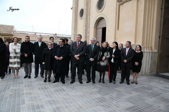 El Cristo, que ha llegado hasta el templo de Nuestra Señora del Rosario portado a hombros por sus caballeros portapasos, fue recibido con repique de campanas y bajo los sones del himno nacional por el Presidente de la Región de Murcia, Ramón Luis Valcárcel, quien procedió a hacer devolución de la talla al presidente de su agrupación, José Sánchez, todo ello en presencia del Hermano Mayor de la Cofradía, Domingo Alajarin, y de nuestro alcalde, Francisco Bernabé.