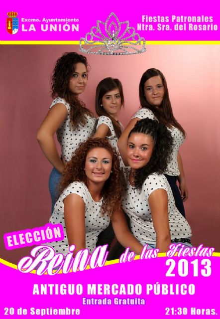 El próximo viernes 20 de septiembre, a las 21:30 horas, en el Antiguo Mercado Público de La Unión se va a celebrar la Gala de Elección de la Reina Juvenil de las Fiestas del Rosario 2013.