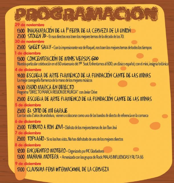 13:00 h. Inauguración de la Feria de la Cerveza de La Unión.