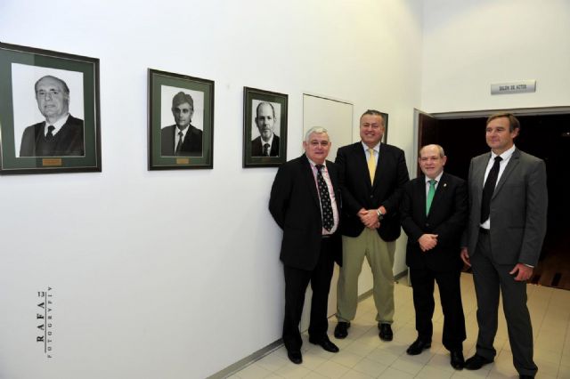 Las fotografías, ubicadas en el pasillo de acceso al Salón de Actos del edificio, recogen las imágenes de Andrés Martínez Cánovas, Salvador Alcaraz Pérez, Juan Antonio Sánchez-Castañol Conesa, Manuel Sanes Vargas y Francisco Martín Bernabé Pérez, todas ellas obtenidas de los fondos del archivo municipal.
