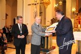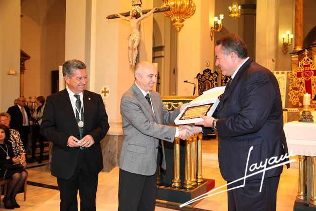El pregonero fue posteriormente homenajeado por el Hermano Mayor de la Cofradía del Stmo. Cristo de los Mineros, Domingo Alajarín, y por nuestro Alcalde, Francisco Bernabé, quienes le hicieron entrega de una placa de gratitud y de la insignia de la Cofradía.