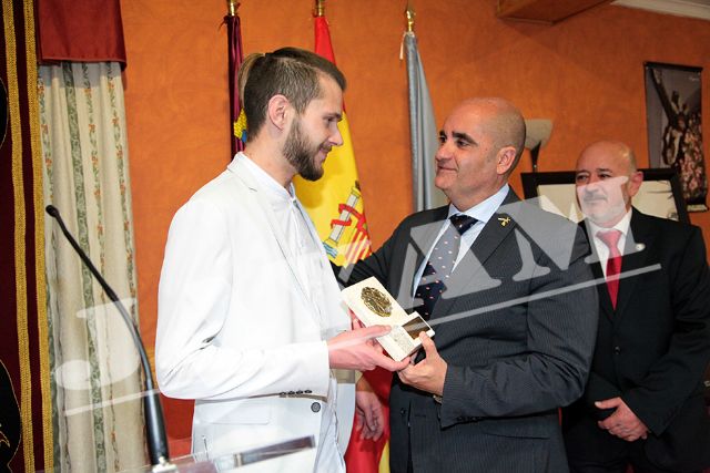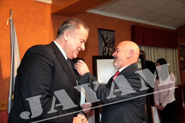 Continuó la velada procediendo a la entrega de distinciones, como la Medalla de la Cofradía a nuestro Párroco, Luis Miguel García Máiquez, y a continuación se hizo entrega del título de Cofrade de Honor, que en esta ocasión ha recaído en el Almirante del Arsenal Militar de Cartagena, Fernando Zumalacárregui Luxán. Finalmente, el Consejero de Fomento, Obras Públicas y Ordenación del Territorio, Francisco Bernabé, recibió la Insignia de Oro de la Cofradía, que le fue impuesta por el Hermano Mayor, Juan Antonio Pérez Campillo.