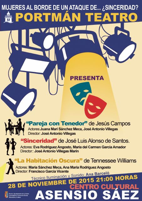 El grupo "Portman Teatro", participará en las actividades programadas por la Concejalía de la Mujer, con la representación de tres obras breves relacionadas con el tema de la Violencia de género.