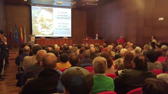 Un magistral Francisco Ródenas, Cronista Oficial de La Unión, relató los hechos acaecidos ese día aportando fechas, nombres, planos, documentos oficiales que con su buen hacer, recopiló y expuso en una conferencia de más de una hora en la que consiguió atrapar y emocionar al público asistente.