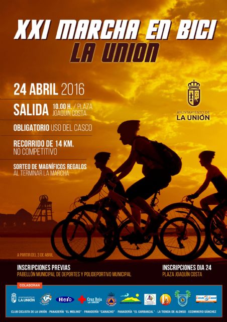 La Concejalía de Deportes que dirige José Solano Legaz, ha organizado para el domingo 24 de Abril, la XXI Marcha en Bicicleta de La Unión.