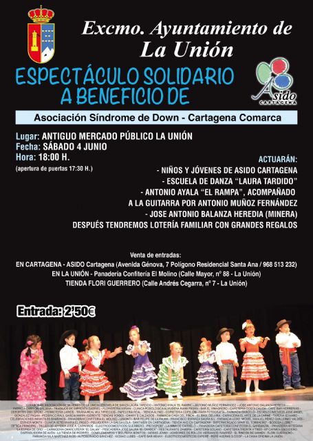 Las entradas están a la venta en la Asociación Asido en Cartagena, en el establecimiento de Flori Guerrero y en la Panadería- Confitería El Molino, ambos en La Unión.