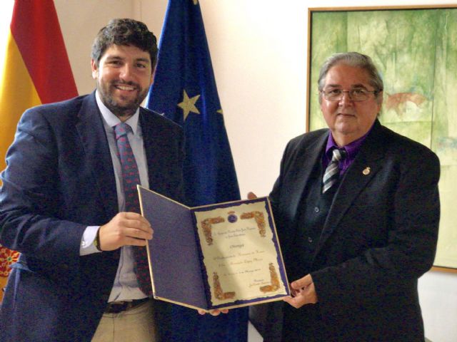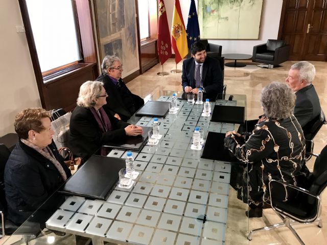 El presidente Fernando López Miras se reunió hoy en el Palacio de San Esteban con el presidente de la Hermandad Nuestro Padre Jesús Nazareno de La Unión, José Cortado, y miembros de su junta directiva, quienes entregaron a López Miras el acta oficial de nombramiento de ‘Hermano de Honor’, una distinción que esta agrupación otorgó al presidente este mismo mes durante un acto que tuvo lugar en el Museo de la Semana Santa Minera.