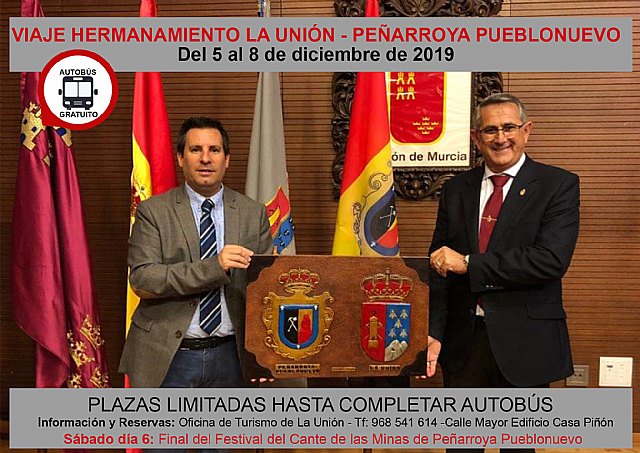 Por este motivo y para reforzar aún más los lazos que nos unen, el Ayuntamiento de La Unión, ha organizado un viaje a Peñarroya- Pueblonuevo que tendrá lugar entre los días 5 al 8 de Diciembre.