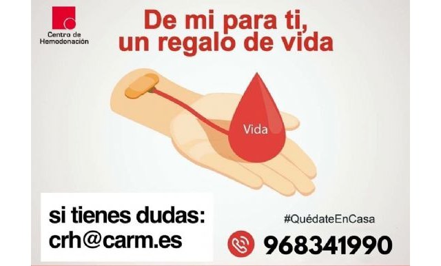 Y si no es donante y quiere serlo, llámenos al 968341990 o escribanos a crh@carm y le decimos como.