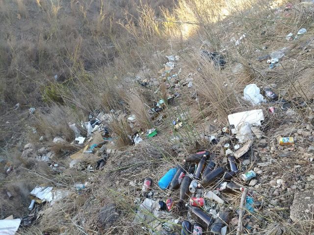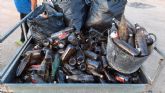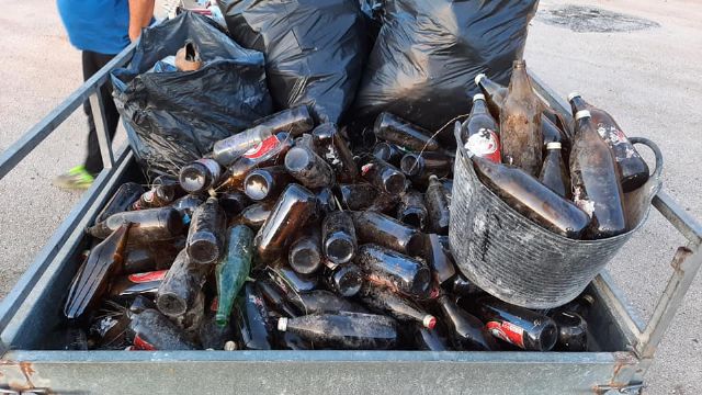 "La Asociación Cultural Héroes de Cavite y voluntarios de ARBA Cartagena -La Unión (que hicieron un sobresfuerzo puesto que estuvieron con reforestaciones todo el fin de semana), hemos limpiado unos 100 o 150 metros cuadrados más, pero es que la cantidad de residuos allí acumulada es tan bestial que han sido más de 600 los kilos recogidos, en su mayor parte botellas de vidrio