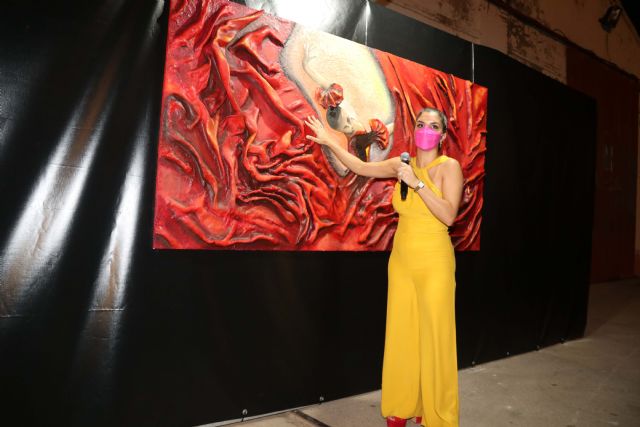 "Me moriré en La Unión, junto a las minas / Con un rumor de mar a mi costado / El cante de mi tierra como rezo / Y el trovo de un amigo por corona". Con estos versos de María Cegarra, Ana Larios dejó fluir su imaginación y creó una bailaora en relieve, con escultura, con un color rojo predominante. "Ese mar para mí está reflejado en la bailaora, en esa falda que suelta cuando gira, que deja ver esas olas", contaba durante la presentación la autora.