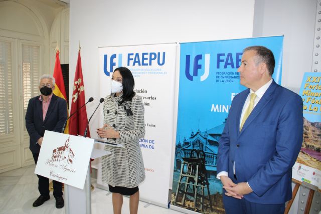 La presentación tuvo lugar en el Palacio de Aguirre de Cartagena, con la participación del presidente de la Federación de Empresarios y Profesionales de La Unión (Faepu) y del Comité Organizador de la Feria de Minerales y Fósiles de La Unión, Carlos Bernabé. Durante la misma, la consejera destacó que la edición de este año va a ser “una oportunidad para el reencuentro; la ocasión de ensalzar los valores culturales, mineros e industriales de la zona; y, sin duda, un catalizador económico para los comercios y restaurante de la zona, porque los más de 15.000 visitantes de otras ediciones consumen en La Unión durante esos días”.
