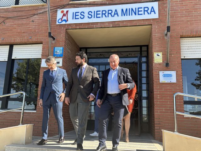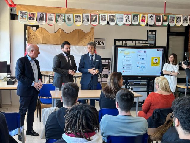 El alcalde y el consejero de Economía, Hacienda y Empresa, Luis Alberto Marín, han participado hoy en el Instituto de Educación Secundaria Sierra Minera de La Unión en la primera de las jornadas formativas para alumnos de FP.