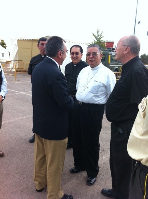 El consejero de justicia y seguridad ciudadana, Manuel Campos, acompañó al Obispo de la ciudad de Ambato (Ecuador), Monseñor Germán Pavón Puente, a visitar las instalaciones del campamento de damnificados de La Torrecilla, donde tuvo ocasión de saludar a una familia ecuatoriana especialmente afectada por los efectos del seísmo. El obispo agradeció al consejero el trato que está recibiendo la comunidad ecuatoriana en Lorca, por la que se encontró especialmente interesado.