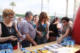 30 junio 2011. Las concejales de Sanidad y Política del Mayor del Ayuntamiento de Lorca, Antonia López y María del Carmen Ruiz, han presentado esta mañana la campaña de prevención contra los golpes de calor que se va a desarrollar por parte del consistorio municipal. Esta iniciativa contempla la instalación de una caseta informativa al respecto en la entrada del mercado semanal donde se va proceder al reparto de 2.000 botellines de agua, 1.000 bricks de zumo, 500 muestras de crema solar y 5.000 folletos informativos. El objetivo de estas actuaciones es el de concienciar a los ciudadanos de la necesidad de estar bien hidratado, por ello se va a proceder al reparto de zumos individuales y 500 botellines de agua, dentro la campaña municipal de protección solar y prevención de los golpes de calor.