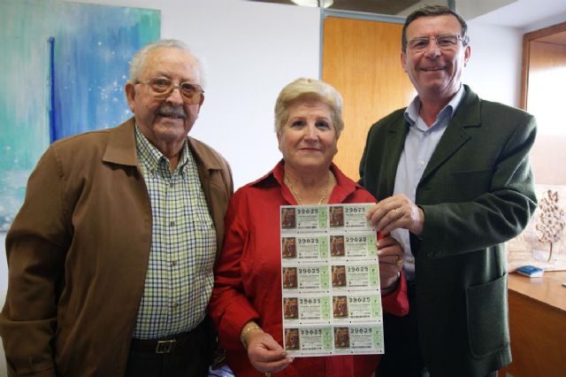El Primer Teniente de Alcalde del Ayuntamiento de Lorca, Francisco Montiel, ha recibido esta mañana de manos de la presidenta de la Casa Regional de Murcia en Aragón, Teresa Rubio, diez décimos de lotería con el número 29625 para el sorteo de Navidad de la Lotería Nacional que se celebra el 22 de diciembre que un amigo de este colectivo ha querido donar a la Mesa Solidaria del Ayuntamiento de Lorca, para ayudar a los afectados por los terremotos.