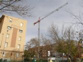 10/12/2012 Una nueva grúa muestra el avance de la reconstrucción de las 40 viviendas demolidas por los seísmos en dos edificios de la Plaza Escultor Rodríguez Larrosa