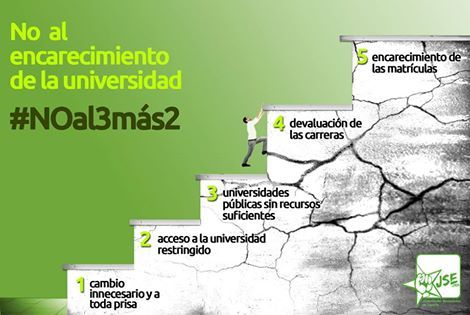 En este sentido, los jóvenes socialistas aseguran que "este nuevo sistema traerá consigo una mayor devaluación de la calidad educativa, al pasar lo grados de 4 a 3 años y ser necesario un máster complementario, económicamente fuera del alcance de la mayoría".