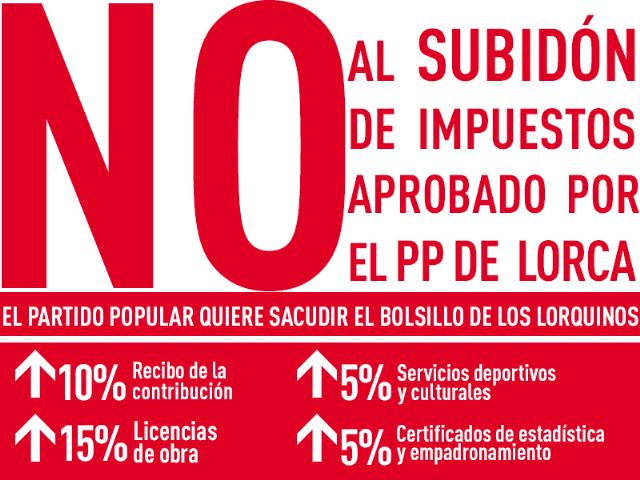 El Viceportavoz segundo del PSOE, y responsable de asuntos económicos, Isidro Abellán ha reiterado el desacuerdo de los socialistas con el incremento de impuestos "injustificado, desproporcionado, alejado de la realidad y que supondrá una verdadero varapalo a la economía de todos los lorquinos".