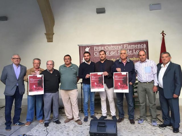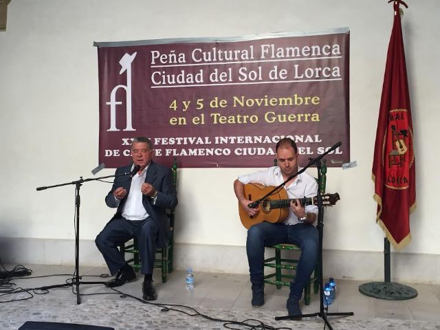 El Concejal de Cultura del Ayuntamiento de Lorca, Agustín Llamas, junto a Francisco López, presidente de la Peña Cultural Flamenca Ciudad del Sol, han presentado el XXVI Festival de Cante Flamenco Ciudad del Sol, que se celebrará surante los días 4 y 5 de noviembre en el Teatro Guerra de Lorca.