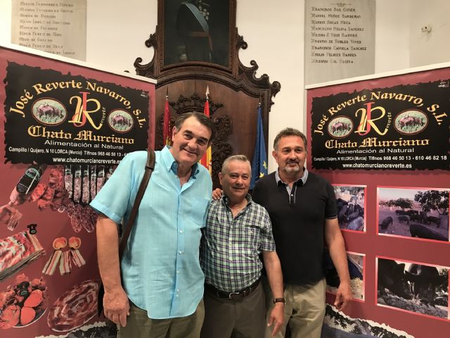 El Concejal de Ganadería del Ayuntamiento de Lorca, Ángel Meca, junto al profesor de investigación del IMIDA, Ángel Potos, y el ganadero José Reverte, ha presentado esta mañana una Jornada de Degustación de Chato Murciano para profesionales, organizada por el Instituto Murciano de Investigación y Desarrollo Agrario y Alimentario (IMIDA), que tendrá lugar en las instalaciones del restaurante La Peña el próximo 12 de junio a partir de las 19 horas.