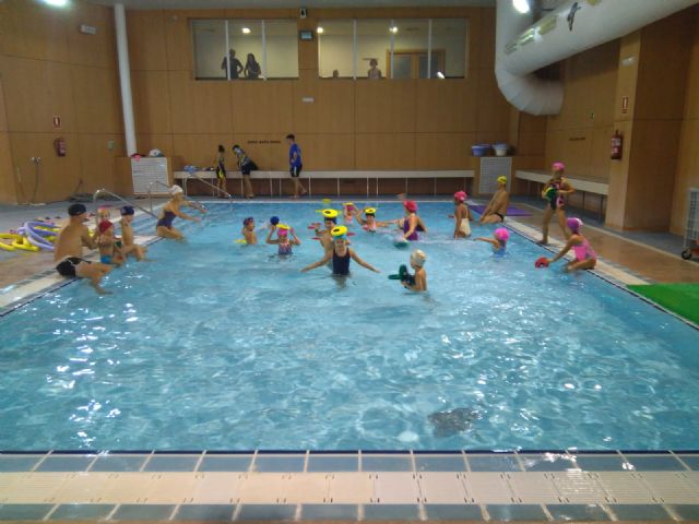 Mientras tanto, en la piscina infantil 20 peques se lo pasaban en grande con los juegos y circuitos preparados por Laura, María y Pilar. Divididos en grupos, los jóvenes empezaron a conocer distintos ejercicios que se pueden realizar en medio acuático y que, además de saludables, son más que entretenidos.