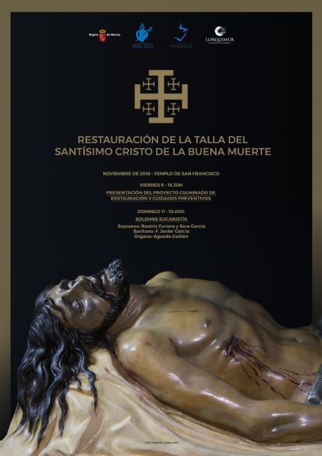 La Hermandad de Labradores, Paso Azul, y la Fundación Paso Azul desarrollarán durante este próximo fin de semana una serie de actividades con el objetivo de conmemorar la finalización del proceso de restauración de la talla del Stmo. Cristo de la Buena Muerte, popularmente conocido como Cristo Yacente, obra de José Planes, que se ha desarrollado durante los últimos meses en la misma iglesia de San Francisco.