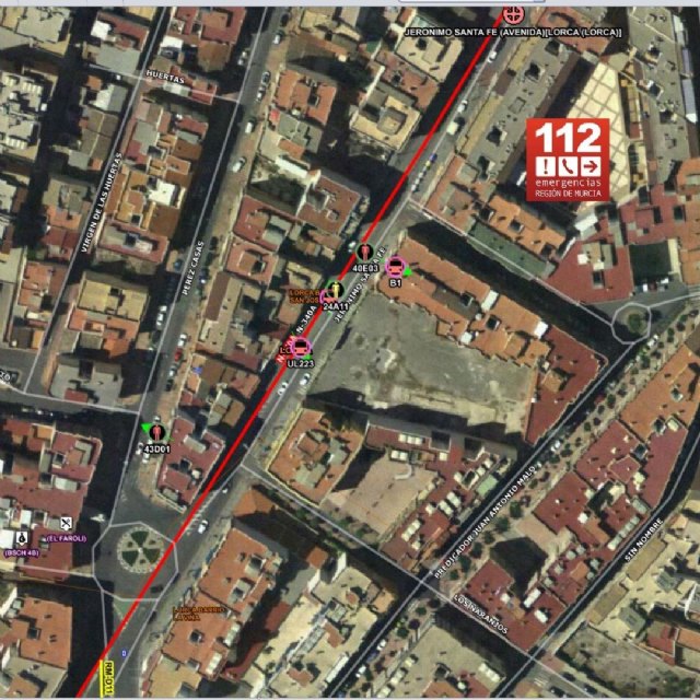 11:33 horas. Bomberos del Consorcio de Extinción de Incendios y Salvamento de la Región de Murcia (C.E.I.S.) y Policía Local de Lorca intervienen en el incendio de una vivienda en C/ Jerónimo Santa Fe, Lorca.