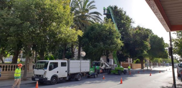 El concejal de Parques y Jardines del Ayuntamiento de Lorca, Antonio Navarro, ha informado de que "desde el pasado 4 de mayo se está realizando por parte del Servicio municipal de Mantenimiento de Parques y Jardines, una revisión y evaluación exhaustiva de riesgo en el arbolado urbano del municipio de Lorca para evitar caídas repentinas de ramas sobre la vía pública".