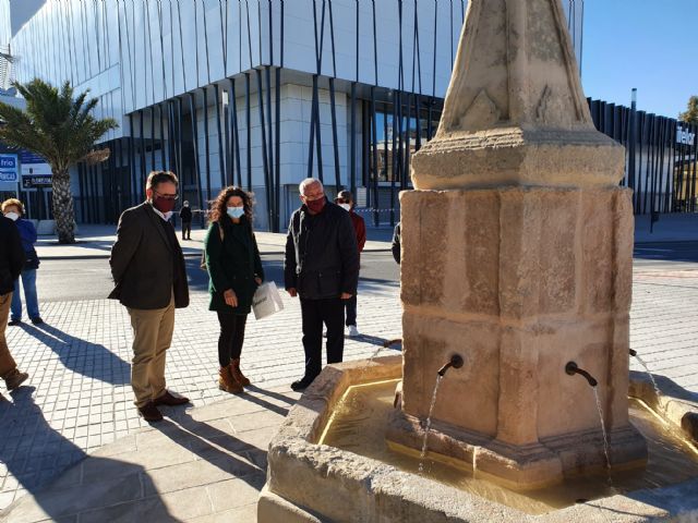 Mateos Molina ha detallado que "la inversión realizada por el Ayuntamiento de Lorca para la recuperación de este elemento patrimonial ha sido de 18.000 euros y los trabajos han incluido también la colocación de un empedrado de losa y la realización de todas las zanjas y reposiciones de pavimentos para dotar la zona de agua y servicio eléctrico para su funcionamiento y, también, se ha instalado el cableado de suministro eléctrico y el cuadro de protección y control de la fuente, además, de instalar las canalizaciones de suministro de agua potable y la bomba de impulsión de agua".