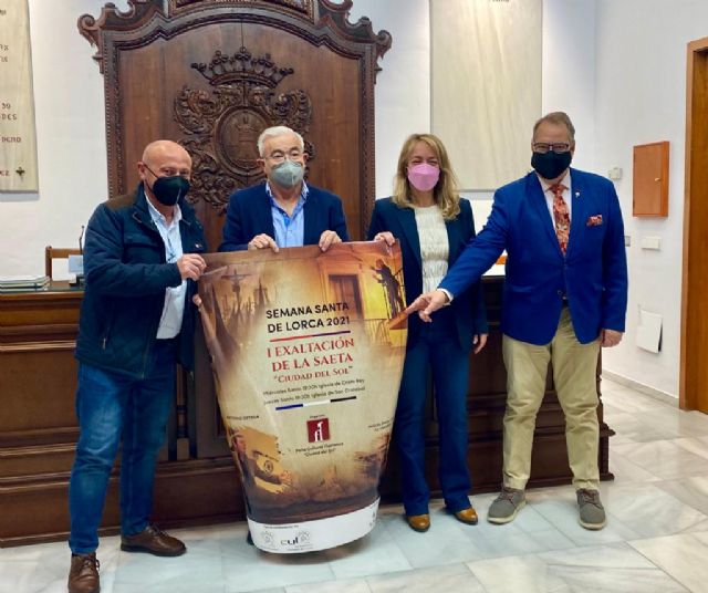 La concejala de Cultura del Ayuntamiento de Lorca, María Ángeles Mazuecos, ha presentado, esta mañana, junto al presidente de la Peña Cultural Flamenca 'Ciudad del Sol', Cayetano Padilla, Luis Terry, Coordinador del evento, la I Exaltación de la Saeta "Ciudad del Sol", organizado por esta entidad cultural en colaboración con el Consistorio lorquino.
