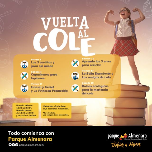 El Centro Comercial Parque Almenara de Lorca ha preparado un septiembre lleno de diversión para los más peques. Los viernes y sábados de septiembre los más pequeños podrán disfrutar de espectáculos de títeres y talleres infantiles, siendo la programación la siguiente: