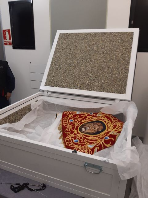 La capeta de la diosa Hathor y la del León, de la caballería de la Reina de Saba, regresaron hace unos días a Lorca mediante el transporte de una empresa especializada.