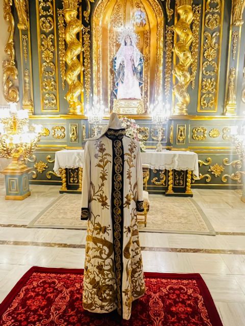La túnica bordada ha sido donada por D. Juan Mora Góngora y es una reproducción a escala de la primera túnica de mayordomo bordada en el Paso Blanco en 1902, que fue sufragada por D. Eloy Puche Plá para su hijo, el poeta D. Eliodoro Puche Felices, que tenía por entonces 17 años.