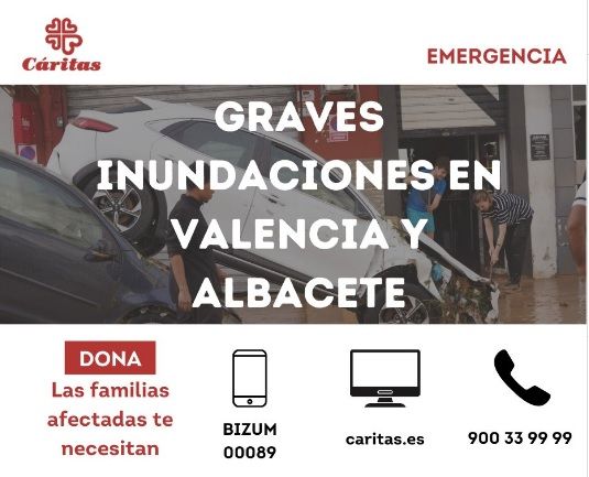 Las aportaciones a través de Cáritas se pueden realizar entrando en la web www.caritas.es, y a través del teléfono 900339999 o por Bizum al 00089.