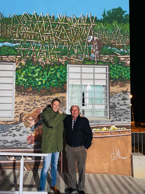 El alcalde de Lorca, Fulgencio Gil, ha visitado en la tarde de este miércoles, el nuevo mural que, desde este mes de febrero, viste la fachada del local social de la pedanía de Río