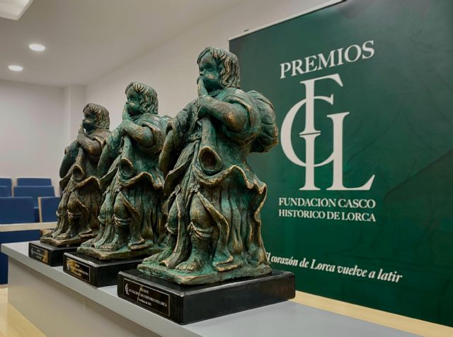 Esta mañana han sido presentadas las esculturas que serán entregadas en dichos premios, un acto que, entre otros, ha contado con la presencia del presidente de la Fundación Casco Histórico de Lorca, Jesús López Molina, de la artista lorquina, Belén Peñas Lázaro y de los concejales de Casco Histórico y de Cultura del Ayuntamiento de Lorca, María Hernández y Santiago Parra, respectivamente.