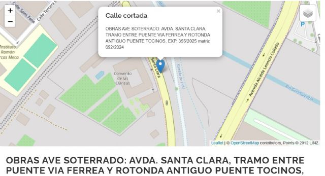Con motivo del avance de las obras del Corredor Mediterráneo de Alta Velocidad, ADIF ha solicitado al Ayuntamiento el corte total al tráfico rodado en la Avenida Santa Clara, en el tramo comprendido entre el Puente de la Vía Férrea y la rotonda del antiguo Puente Tocinos. Así lo han anunciado este jueves los ediles de Infraestructuras y Seguridad Ciudadana del Ayuntamiento de Lorca, Ángel Meca Ruzafa y Juan Miguel Bayonas, respectivamente, quienes también han informado que este corte de tráfico estará vigente desde el jueves, 20 de marzo hasta el viernes, 4 de abril. Además, es importante destacar que se mantiene el tránsito peatonal y se prohibirá el estacionamiento en la zona desde las 00:00 horas del 20 de marzo.
